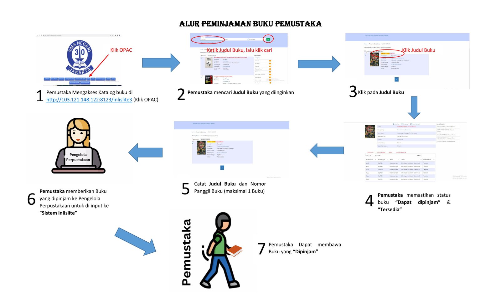 Prosedur Alur Sirkulasi Perpustakaan R.A. Kartini SMA Negeri 30 Jakarta. Layanan sirkulasi meliputi pendaftaran anggota, peminjaman, pengembalian, dan perpanjangan koleksi secara tertib dan terintegrasi untuk memberikan pelayanan yang cepat, mudah, dan nyaman bagi seluruh warga sekolah.